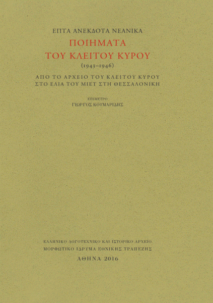 Το 2016 κυκλοφόρησαν από το Μορφωτικό Ίδρυμα Εθνικής Τραπέζης (ΜΙΕΤ) τα «Επτά ανέκδοτα νεανικά ποιήματα του Κλείτου Κύρου» (1943-1946), με επίμετρο του ιστορικού – αρχειονόμου Γιώργου Κουμαρίδη. Τα εν λόγω ποιήματα (για την ακρίβεια, έξι ανέκδοτα και ένα αθησαύριστο, που χαρακτηρίζονται από τον Κουμαρίδη «δοκιμές», «βηματισμοί»), γραμμένα σε μια εποχή μεγάλων γεγονότων και έντονων λογοτεχνικών ανησυχιών του Κύρου, εντοπίστηκαν στο αρχείο του ποιητή, το οποίο βρίσκεται στο Ελληνικό Λογοτεχνικό και Ιστορικό Αρχείο (ΕΛΙΑ) του ΜΙΕΤ στη Θεσσαλονίκη.