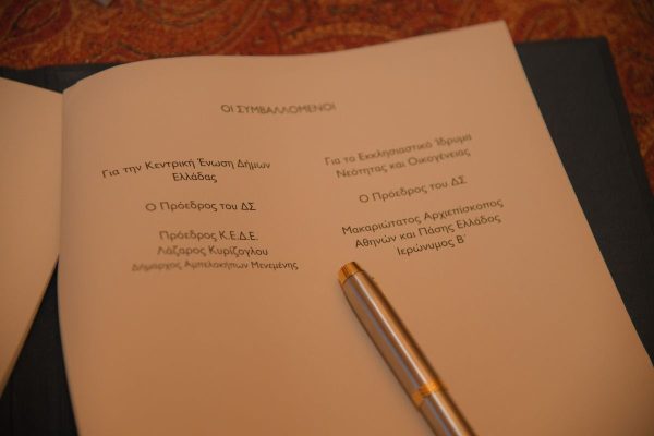 Η Κεντρική Ένωση Δήμων Ελλάδας (ΚΕΔΕ) προχώρησε σε μια σημαντική πρωτοβουλία και υπέγραψε Μνημόνιο Συνεργασίας με το Ίδρυμα Νεότητος και Οικογένειας της Ιεράς Αρχιεπισκοπής Αθηνών. Η Ιερά Αρχιεπισκοπή, με το κύρος και το εκτεταμένο δίκτυο κοινωνικής προσφοράς της, αποτελεί έναν ισχυρό εταίρο στην εθνική προσπάθεια για την πρόληψη και καταπολέμηση της ενδοοικογενειακής βίας.