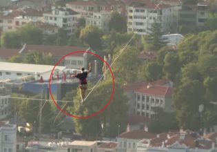 Ορισμένοι μάλιστα «ψάρωσαν» στην όψη του ακροβάτη, καθώς φαινόταν σαν να περπατάει στο νερό ενώ στην πραγματικότητα βρισκόταν πάνω σε ένα σχοινί.