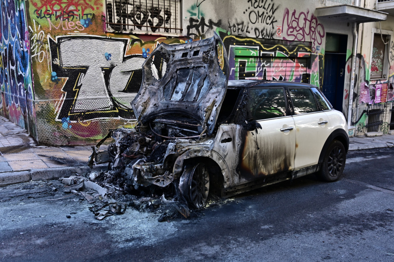 Εξάρχεια: Πέντε αυτοκίνητα κάηκαν ολοσχερώς και 21 υπέστησαν φθορές – Προσήχθησαν 72 άτομα