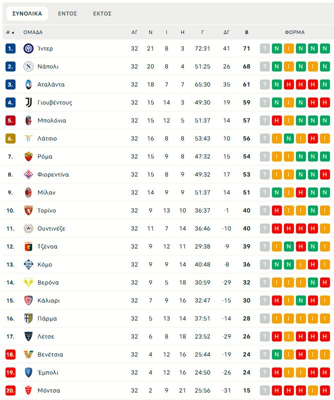 Τα αποτελέσματα της 32ης αγωνιστικής