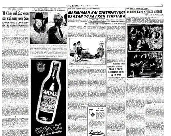 «ΤΟ ΒΗΜΑ», 25.4.1962, Ιστορικό Αρχείο «ΤΟ ΒΗΜΑ» & «ΤΑ ΝΕΑ»