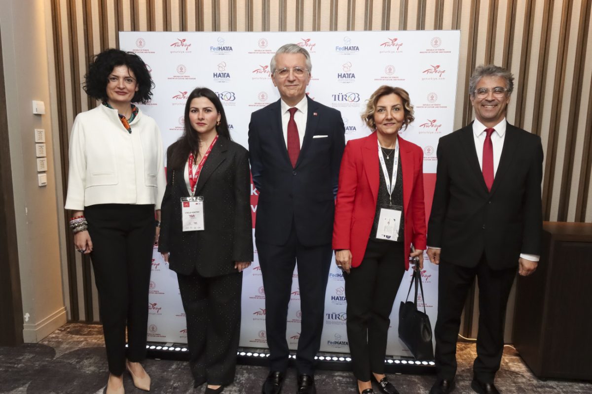 (διακρίνονται από αριστερά): Λύσανδρος Τσιλίδης, Πρόεδρος FedHATTA, Zeynep Üçok Çelikağ Υπεύθυνη Marketing Τουρκικού Οργανισμού Προβολής και Προώθησης Τουρισμού TGA, Çağla Yöntem Διευθύντρια MICE TGA, Çağatay Erciyes Πρέσβης της Τουρκίας στην Αθήνα, Müberra Eresin Πρόεδρος της Ένωσης Ξενοδόχων Τουρκίας TÜROB, καθ. Veli Aydin, Εκπρόσωπος του Γραφείου Πολιτισμού και Τουρισμού της Τουρκίας στην Αθήνα.