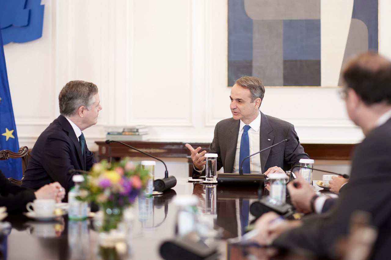 Ο κ. Μητσοτάκης συζήτησε με τον πρόεδρο του Eurogroup την πορεία της ελληνικής οικονομίας όπως και τη διαμόρφωση της κοινής ευρωπαϊκής θέσης ως προς το εμπόριο και τους δασμούς Τραμπ