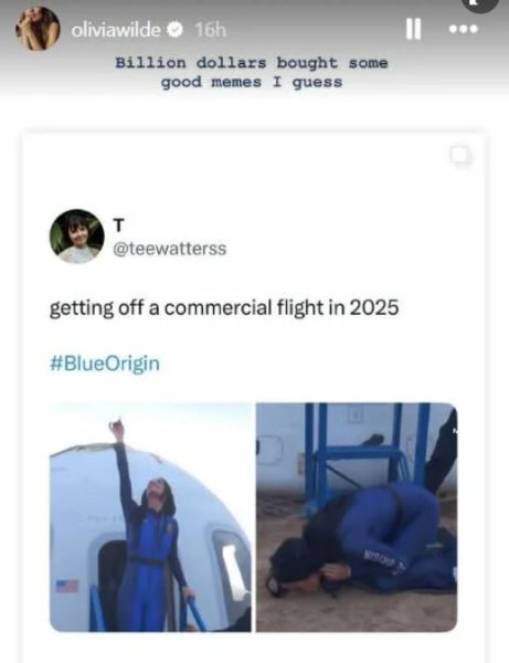 Η Ολίβια Γουάιλντ κοινοποίησε το meme στα stories της στο Instagram, σχολιάζοντας ειρωνικά: «Δισεκατομμύρια δολάρια εξασφάλισαν μερικά καλά memes, υποθέτω».
