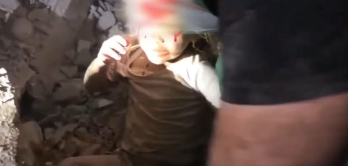 Οι διασώστες προσπαθούν να καθησυχάσουν το παιδί, καθώς απομακρύνουν σιγά σιγά τα συντρίμμια. Καταφέρνουν έπειτα από προσπάθεια να την ελευθερώσουν. «Είσαι καλά;», λέει ο ένας διασώστης στο τραυματισμένο κορίτσι. «Πού είναι η μαμά;», επιμένει να ρωτάει εκείνη. «Πού πήγατε τη μαμά μου;».