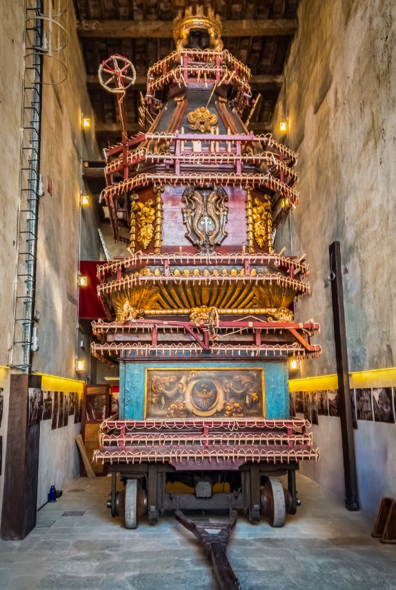 Το πρωί της Κυριακής του Πάσχα, το άρμα γεμάτο πυροτεχνήματα τοποθετείται μπροστά από τον Καθεδρικό Ναό της Σάντα Μαρία ντελ Φιόρε.