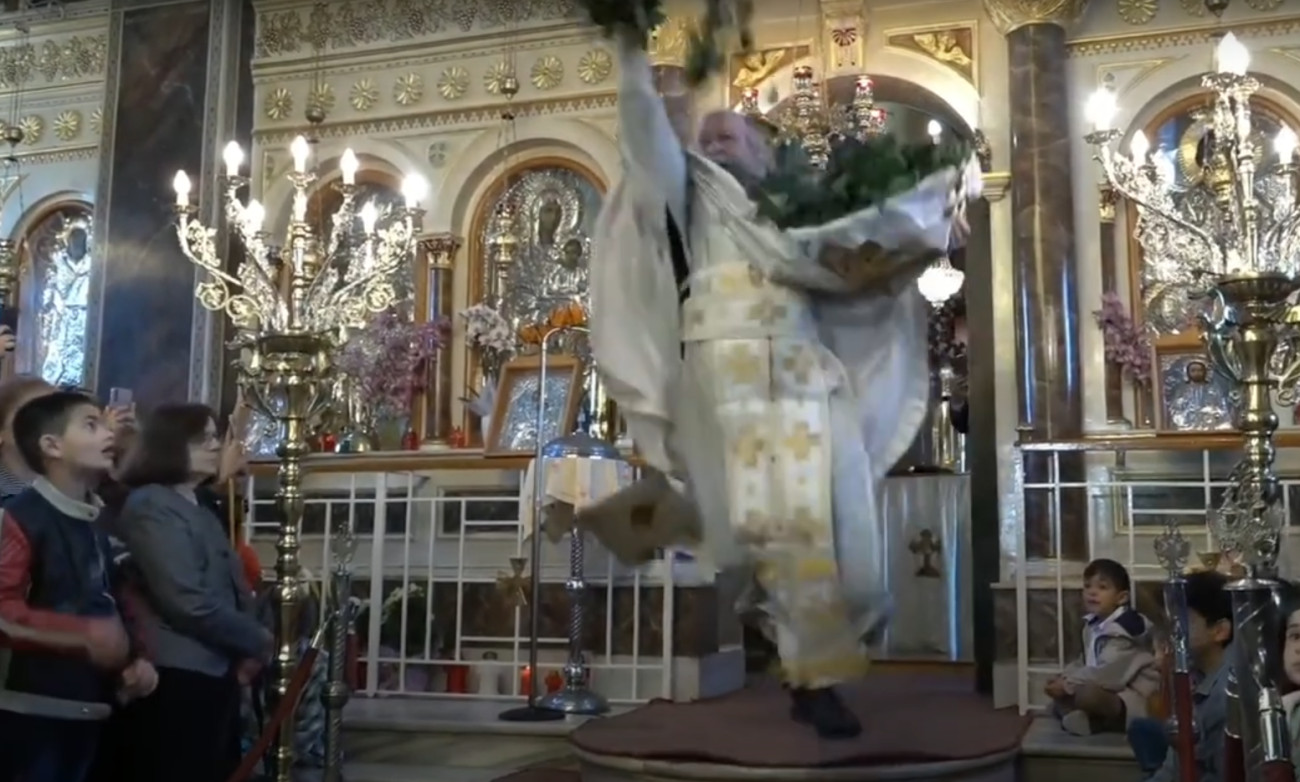 Ο ιερέας σκόρπισε δάφνες, σύμβολα της νίκης και της αιώνιας ζωής, σε ολόκληρο τον ναό.
