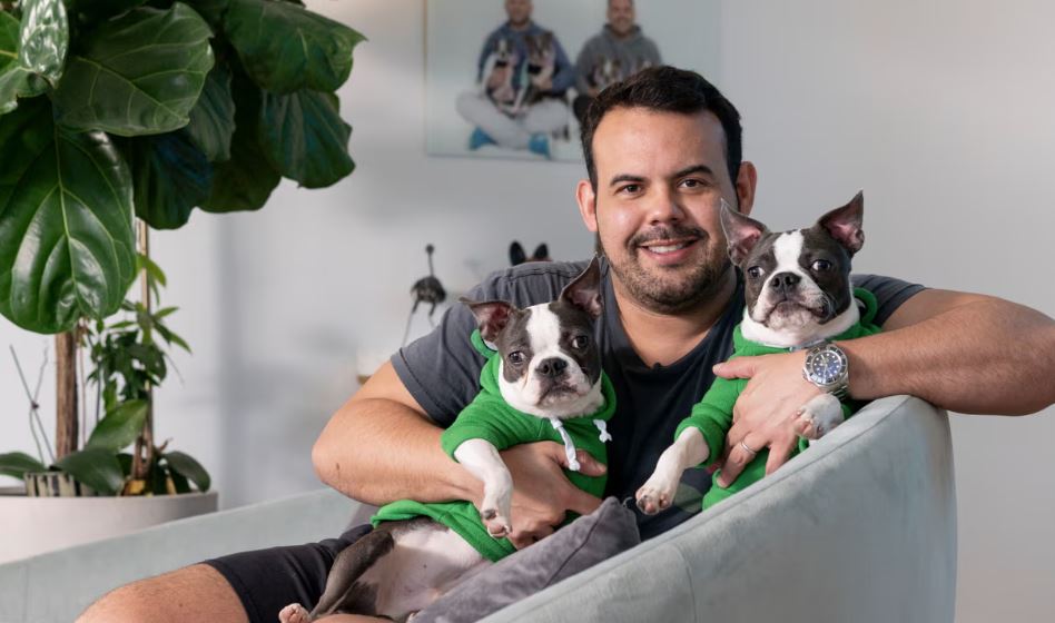 Ο Luiz Hoinkis με τα δύο κλωνοποιημένα τεριέ της Βοστώνης, τον Lucas Gabriel και τον Lucas Prince. Φωτ: Josh Ritchie/The Guardian