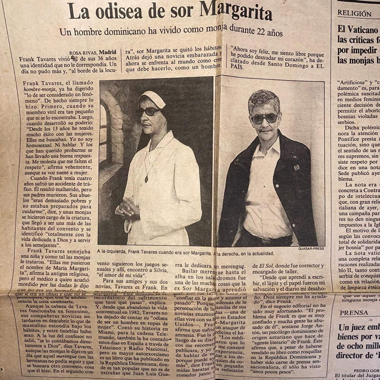 Ο Φρανκ Ταβάρες γεννήθηκε ως άνδρας στη Δομινικανή Δημοκρατία, αλλά για 22 χρόνια της ζωής του, ζούσε ως καλόγρια με το όνομα «αδελφή Μαργαρίτα» σε δύο διαφορετικά μοναστήρια, υποδυόμενος μια από τις μοναχές εκεί, χωρίς κανείς να υποψιαστεί τίποτα.