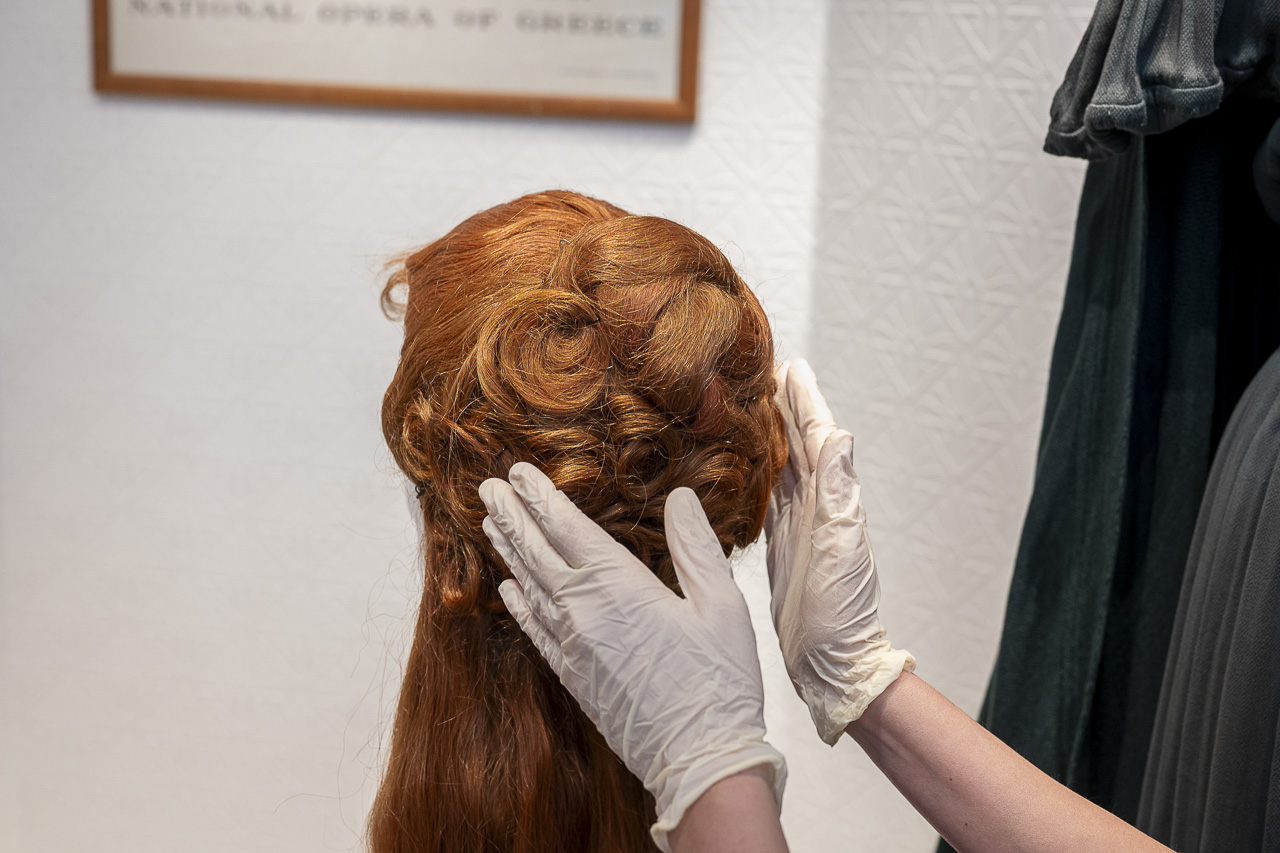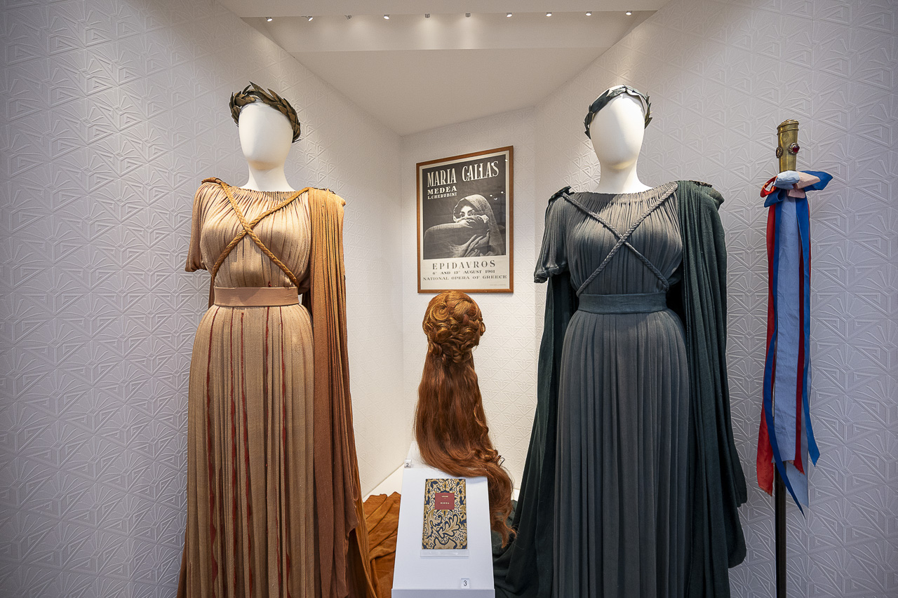 Τέλος, η εντυπωσιακή περούκα που φορούσε ως Μήδεια στη Σκάλα του Μιλάνου, υπενθυμίζει τους εμβληματικούς της ρόλους και την επιβλητική σκηνική της παρουσία.