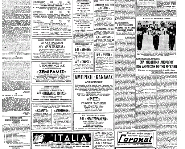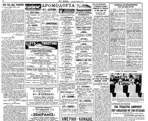 «ΤΟ ΒΗΜΑ», 2.5.1954, Ιστορικό Αρχείο «ΤΟ ΒΗΜΑ» & «ΤΑ ΝΕΑ»
