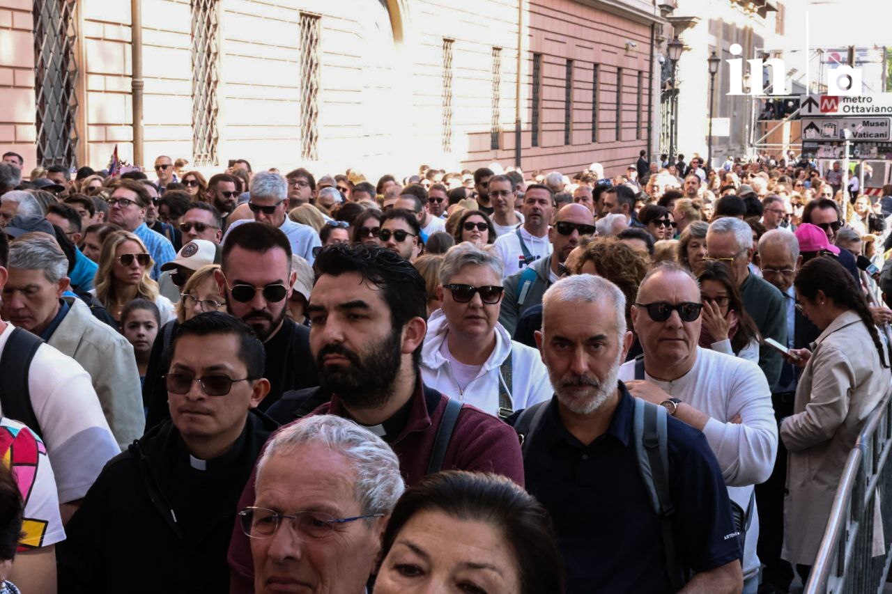 Ιερωμένοι, καρδινάλιοι, μοναχοί και οι επιβλητικοί Ελβετοί Φρουροί συνόδευσαν με ευλάβεια τη σορό, καθώς οι καμπάνες της Βασιλικής ήχησαν πένθιμα στην Πλατεία του Αγίου Πέτρου. Εκεί, περίπου 20.000 πιστοί έχουν συγκεντρωθεί για να αποτίσουν τον ύστατο φόρο τιμής στον Πάπα Φραγκίσκο.