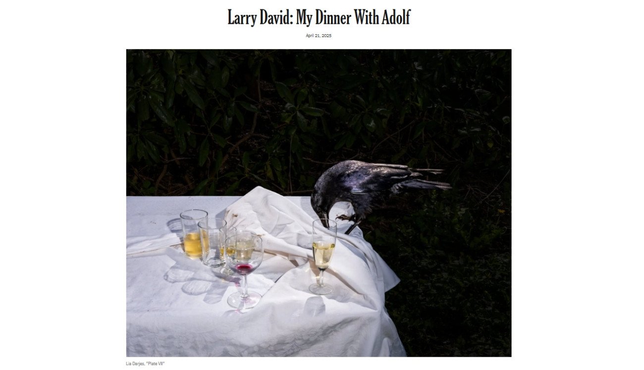 Στη συνέχεια, οι New York Times δημοσίευσαν ένα σατιρικό δοκίμιο γραμμένο από τον δημιουργό του Curb Your Enthusiasm, μια περιγραφή σε πρώτο πρόσωπο ενός επικριτή του Χίτλερ, ο οποίος δέχεται μια πρόσκληση για δείπνο από τον Φύρερ και καταλήγει να αποφασίσει ότι: «τελικά δεν είμαστε και τόσο διαφορετικοί».