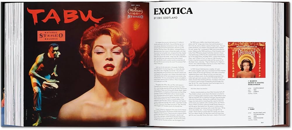 «Όταν τα εξώφυλλα ομαδοποιούνται, η εξέλιξη του είδους είναι σαφής. Τα άλμπουμ από τη δεκαετία του 1950 απευθύνονταν πιο άμεσα στους άνδρες, συχνά συνδεδεμένα με νυχτερινά κέντρα, το κάπνισμα, το ποτό και τις γενικές έννοιες της «αμαρτίας»» προσθέτει η Hanson.