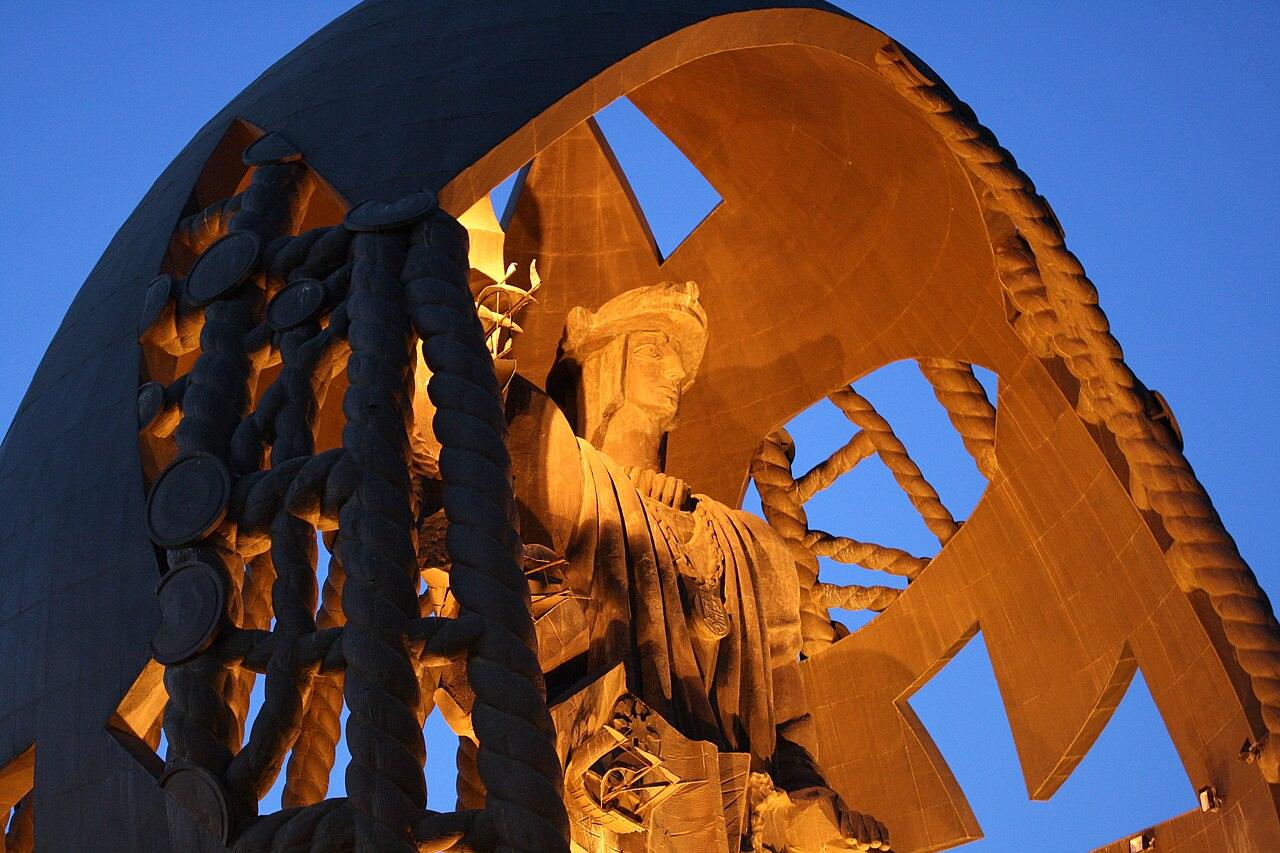 Το Birth of a New Man, ευρέως γνωστό ως el huevo de Colón, είναι ένα μνημείο στη Σεβίλλη της Ισπανίας. Είναι ένα έργο του Ζουράμπ Τσερετέλι, που αποτελείται από ένα κολοσσιαίο άγαλμα που αναπαριστά τον Χριστόφορο Κολόμβο, μερικώς τυλιχμένο από ένα κέλυφος που μοιάζει με αυγό. Πηγή: Wikimedia
