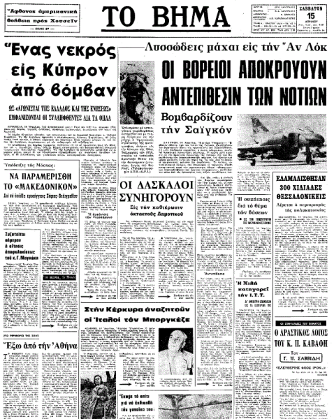 «ΤΟ ΒΗΜΑ», 15.4.1972, Ιστορικό Αρχείο «ΤΟ ΒΗΜΑ» & «ΤΑ ΝΕΑ»