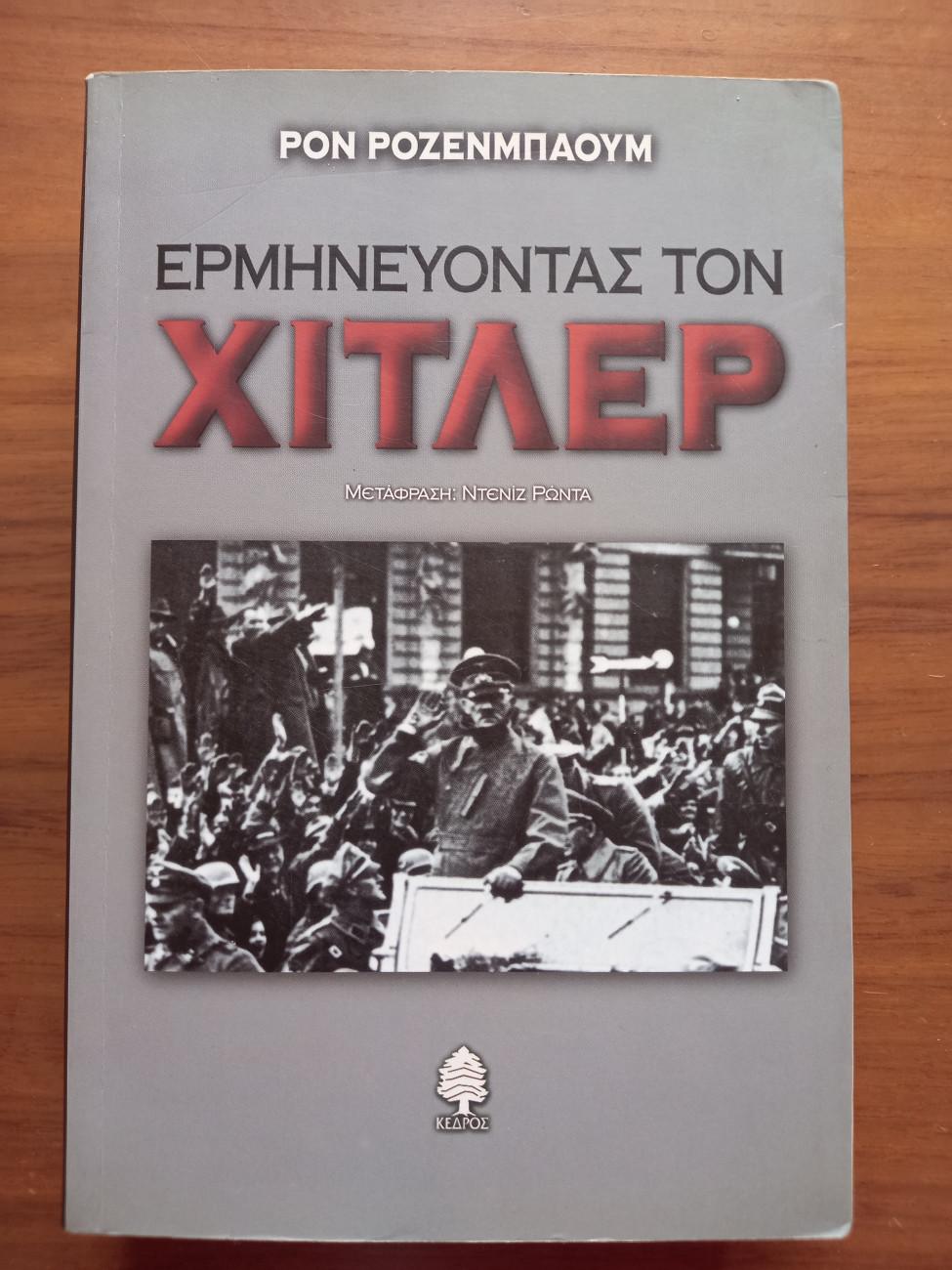 Ο ερευνητικός δημοσιογράφος Ρον Ροζενμπάουμ συγκεντρώνει στο διαφωτιστικό «Ερμηνεύοντας τον Χίτλερ» (εκδ. Κέδρος, μτφρ. Ντενίζ Ρώντα, 2001) τις κατά καιρούς θεωρίες –και τις ψυχαναλυτικές-, με τις οποίες ερευνητές και ιστορικοί επιχείρησαν να ερμηνεύσουν το «mysterium tremendum» της χιτλερικής φύσης. Θυμίζει και αυτός στην αρχή την ερμηνεία του Εριχ Φρομ το 1973 ότι ο Χίτλερ ήθελε να τιμωρήσει τους Γερμανούς –και όχι τους Εβραίους!- για να τιμωρήσει τη μητέρα του, την υπόθεση της εγκεφαλίτιδας (η «χαρισματική» πολιτική περσόνα οφειλόταν σε λανθάνουσα ασθένεια) και την υπόθεση της σύφιλης (Σάιμον Βίζενταλ), την οποία δήθεν κόλλησε από εβραία πόρνη. Μία άλλη διαδεδομένη ερμηνεία ήταν εκείνη του «μάγου» που σαγηνεύει τα πλήθη, του οραματιστή χειραγωγού, την οποία επικαλείται, για παράδειγμα, ο Χιου Τρέβορ Ρόπερ στο «Χίτλερ –οι τελευταίες ημέρες» (Ιωλκός, 2005, μτφ. Στέλιος Χουρμουζιάδης).