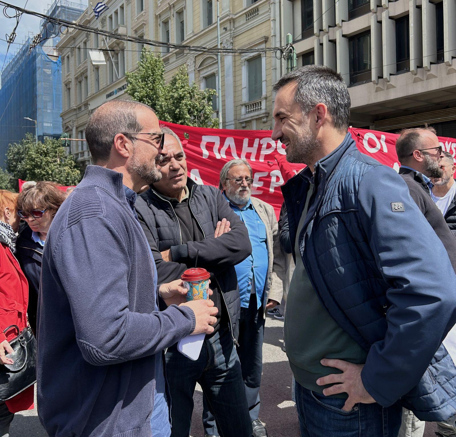Στην απεργιακή συγκέντρωση για την εργατική πρωτομαγιά βρέθηκε ο πρόεδρος της Νέας Αριστεράς Αλέξης Χαρίτσης στο μπλοκ που συγκρότησε το κόμμα υπό το πανό με τίτλο «να πληρώσουν οι πλούσιοι, να κερδίσει ο λαός».
