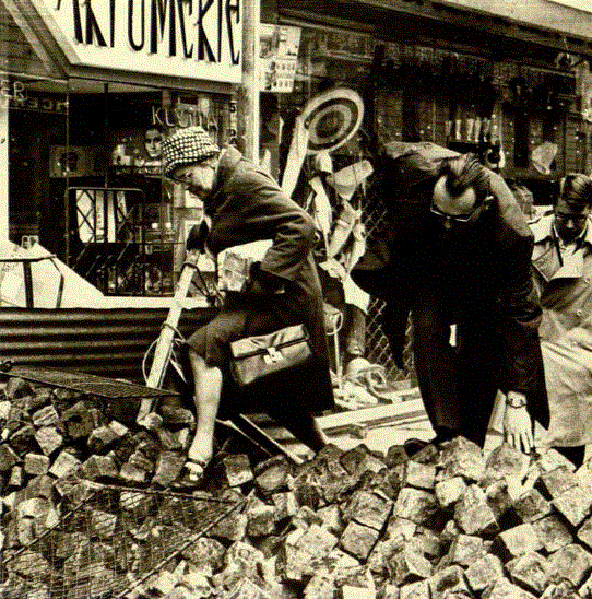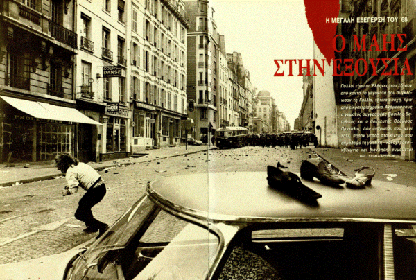 Όμως τότε, εκείνη την εποχή που όλοι μας ζούσαμε τα γεγονότα από κοντά (κατά κάποιον τρόπο, εμείς οι εξόριστοι Έλληνες συμμετέχοντας κιόλας), δεν μπορούσα να εξηγήσω τη σκηνή που έβλεπα από το παράθυρό μου, στο τέταρτο πάτωμα της οδού Ζακόμπ: κάτω στη διασταύρωση οι «επαναστατημένοι χωρίς αιτία» φοιτητές. Και η ασπιδοφόρα αστυνομία με τα κράνη και τα δακρυγόνα να τους μπλοκάρει τις τρεις εξόδους αφήνοντας την τέταρτη ελεύθερη για να μπορούν να το σκάσουν.