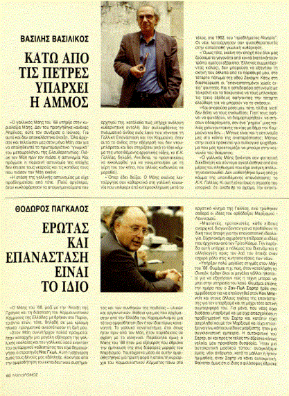 *Κείμενο του αειμνήστου Βασίλη Βασιλικού για τον περίφημο Μάη του ’68. Έφερε τον τίτλο «Κάτω από τις πέτρες υπάρχει η άμμος» και είχε δημοσιευτεί στον «Ταχυδρόμο» στις 23 Μαΐου 1991.