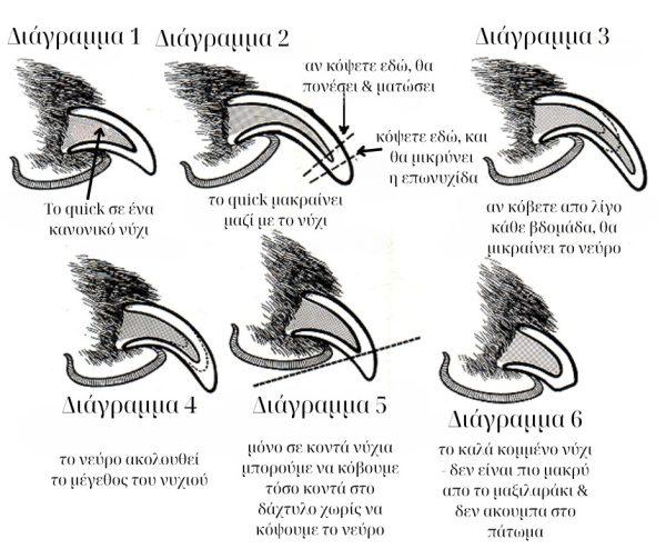 Μαύρα νύχια: Στο αρχικό κόψιμο φαίνεται μόνο ο εξωτερικός πολτός, όχι το quick ή ο εσωτερικός πολτός. Χρειάζεται λίγο ακόμα κόψιμο