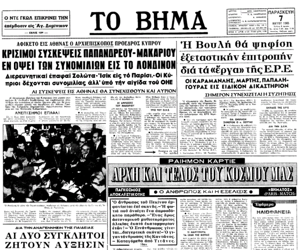 «ΤΟ ΒΗΜΑ», 7.5.1965, Ιστορικό Αρχείο «ΤΟ ΒΗΜΑ» & «ΤΑ ΝΕΑ»