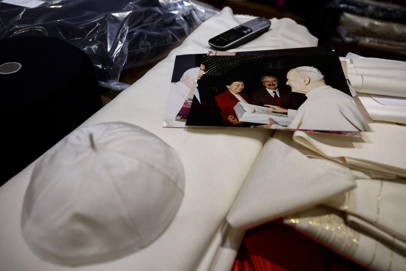 Ο νέος Πάπας που θα εκλεγεί από το κονκλάβιο, το οποίο αρχίζει τις διαδικασίες στις 7 Μαΐου, θα παρουσιαστεί στον κόσμο από το μπαλκόνι της Βασιλικής του Αγίου Πέτρου φορώντας ένα από τα τρία ενδύματα που ο Raniero Mancinelli έχει στο τραπέζι του μικρού εργαστηρίου του στη Via Borgo Pio, σε απόσταση αναπνοής από το Βατικανό.