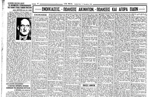 «ΤΑ ΝΕΑ», 11.10.1952, Ιστορικό Αρχείο «ΤΟ ΒΗΜΑ» & «ΤΑ ΝΕΑ»