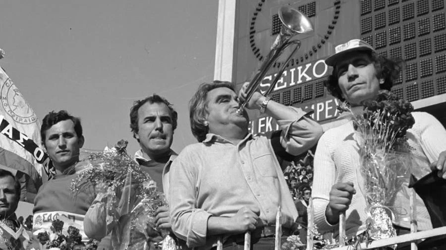 Aristea Dourida’s words reveal the pain of a wife who’s lost her husband. But they are also a hymn of love of, and faith in, Olympiacos. Because that’s who Vasilis Douridas was. That was “Attilio”, a loyal soldier of the Legend. A tireless and unstoppable follower of the red-and-white ideal. The character who, face flushed, would sound the signal with his trumpet under the giant Gate 7 clock at the old Karaiskakis Stadium.