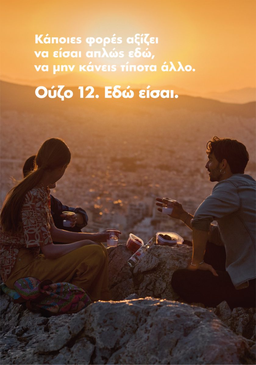 Συνεπώς, μην περιμένεις άλλο για την ημέρα που θα παραδώσεις τη διπλωματική σου ή για την ημέρα που θα βγεις σε καλοκαιρινή άδεια. Μην περιμένεις την κατάλληλη στιγμή ή τη στιγμή που θα βρεις χρόνο, διότι «Εδώ είσαι», όπου κι αν είσαι, με όποιους κι αν είσαι, και αξίζει να βιώσεις αυτή τη στιγμή. Να «βουτήξεις» στο εδώ και το τώρα, αφήνοντας για λίγο στην άκρη τις δεύτερες σκέψεις, τα προγράμματα και τις υποχρεώσεις. Η παρέα, η πόλη, η ίδια η ζωή σε καλούν. Μην χάσεις, λοιπόν, τις ευκαιρίες να είσαι απλά εδώ, να υπάρχεις ανάμεσα σε αυτούς που αγαπάς, ειδικά όταν αυτές οι ευκαιρίες περιλαμβάνουν και τη συντροφιά του αγαπημένου Ούζου 12, το οποίο δίνει μοναδικό άρωμα και κορυφαία γεύση στις εμπειρίες που θέλεις να θυμάσαι για πάντα.