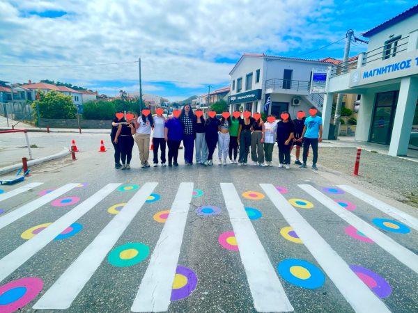Η δράση, την οποία μαθητές και εκπαιδευτικοί υλοποίησαν με ιδιαίτερο ενθουσιασμό και δημιουργική διάθεση, περιλάμβανε τον επανασχεδιασμό και τη βαφή των τριών διαβάσεων στο ύψος της σχολικής μονάδας με πρωτότυπα καλλιτεχνικά μοτίβα, στο πλαίσιο του Νέου Προγράμματος Σπουδών του Υπουργείου Παιδείας «Δράσεις Ενεργού Πολίτη».