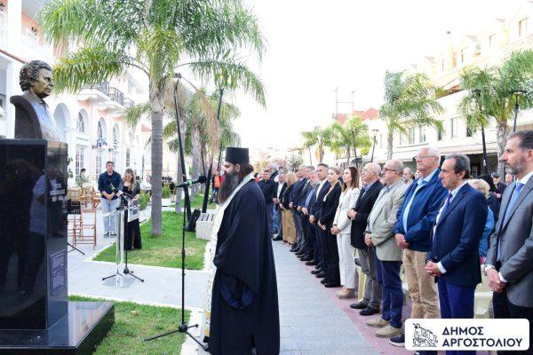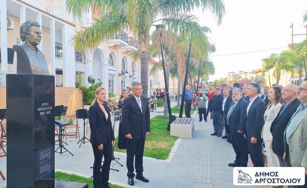 Τα αποκαλυπτήρια της προτομής, που τοποθετήθηκε στην οδό Ριζοσπαστών, μπροστά από την Φιλαρμονική Σχολή Κεφαλληνίας, έκαναν ο Δήμαρχος Αργοστολίου κ. Θεόφιλος Μιχαλάτος.