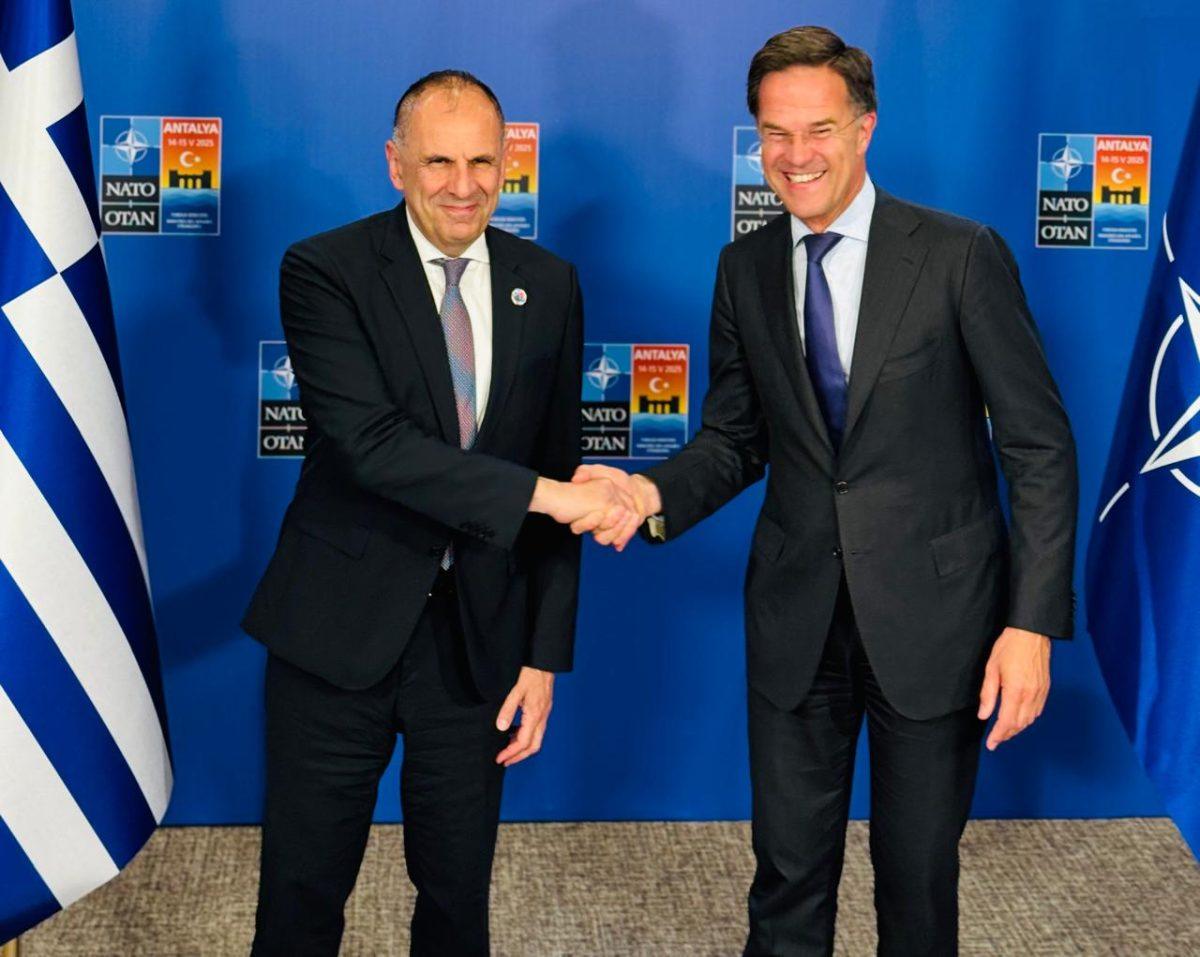 Συνάντηση με το ΓΓ του ΝΑΤΟ, Μαρκ Ρούτε είχε την Τετάρτη ο Γιώργος Γεραπετρίτης, στο περιθώριο της άτυπης Συνόδου του Υπουργών Εξωτερικών των κρατών – μελών του ΝΑΤΟ που πραγματοποιείται στην Αττάλεια της Τουρκίας.