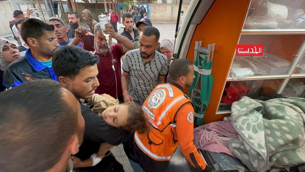 Βίντεο και φωτογραφίες που δημοσιεύτηκαν σε παλαιστινιακά μέσα ενημέρωσης δείχνουν το βομβαρδισμένο νοσοκομείο και την κατάσταση πανικού που επικράτησε μετά τους βομβαρδισμούς με τραυματίες και εκτοπισμένους να προσπαθούν να προστατευθούν από τις επιθέσεις.