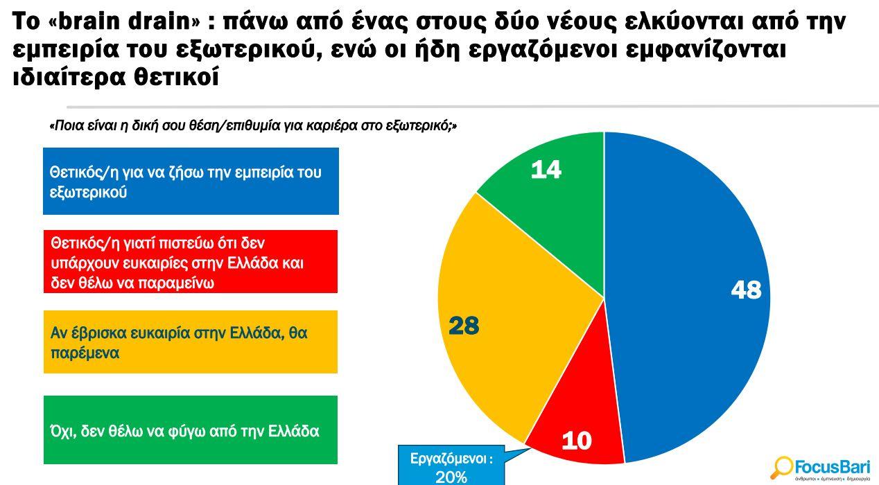 Από την άλλη πλευρά, ένα σημαντικό ποσοστό (28%) λέει πως αν έβρισκε ευκαιρία στην Ελλάδα, θα παρέμενε στη χώρα μας.