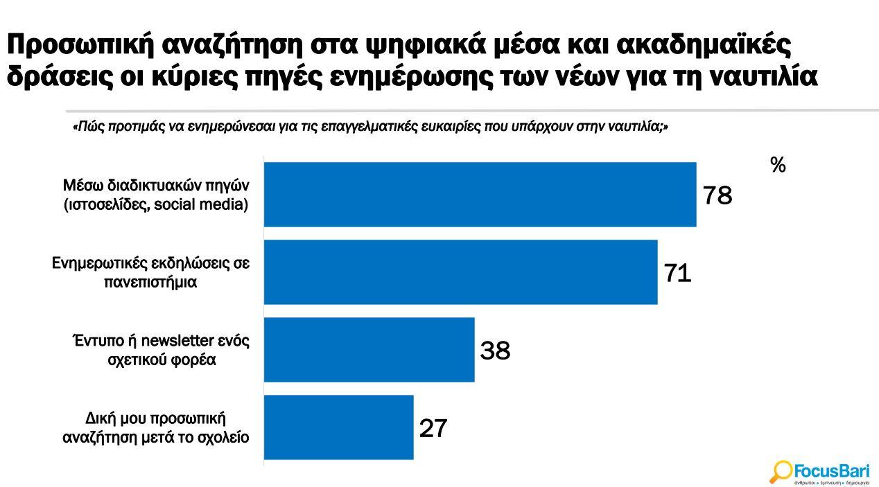 Η ενημέρωσή τους για τη ναυτιλία ξεκινά ψηφιακά, καθώς οι νέοι στρέφονται πρωτίστως στα online μέσα (78%) και τις ακαδημαϊκές δράσεις για πληροφόρηση (71%).