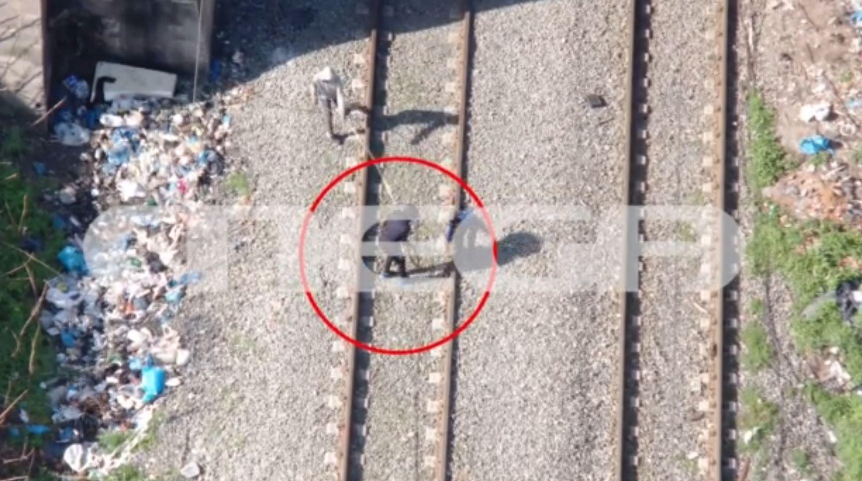 Ειδικότερα, όπως φαίνεται στα πλάνα από drone, τα άτομα έχουν πάει στις γραμμές του ΟΣΕ, ξηλώνουν τα καλώδια και όλα τα μεταλλικά στοιχεία που μπορούν να πάρουν, την ώρα μάλιστα που δίπλα τους περνάει ένα τρένο.