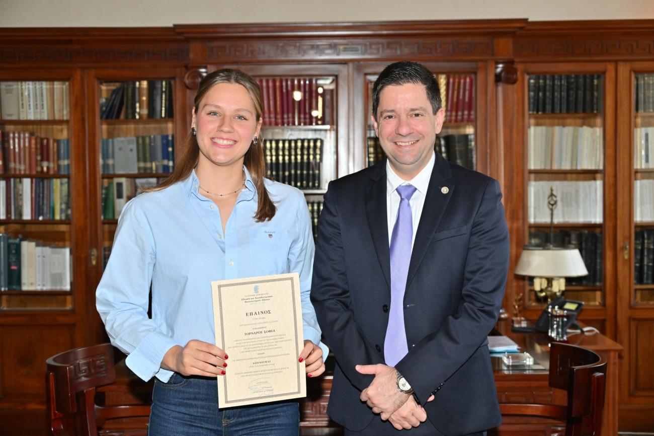 «Η διάκρισή σας αποδεικνύει ότι η ακαδημαϊκή αριστεία μπορεί να συνυπάρχει αρμονικά με τον υψηλό αθλητισμό. Αποτελείτε φωτεινά παραδείγματα για τη νέα γενιά και μας κάνετε όλους περήφανους. Το Πανεπιστήμιο στέκεται δίπλα σας και στηρίζει τα όνειρά σας», ανέφερε χαρακτηριστικά ο Πρύτανης του ΕΚΠΑ κ. Σιάσος.