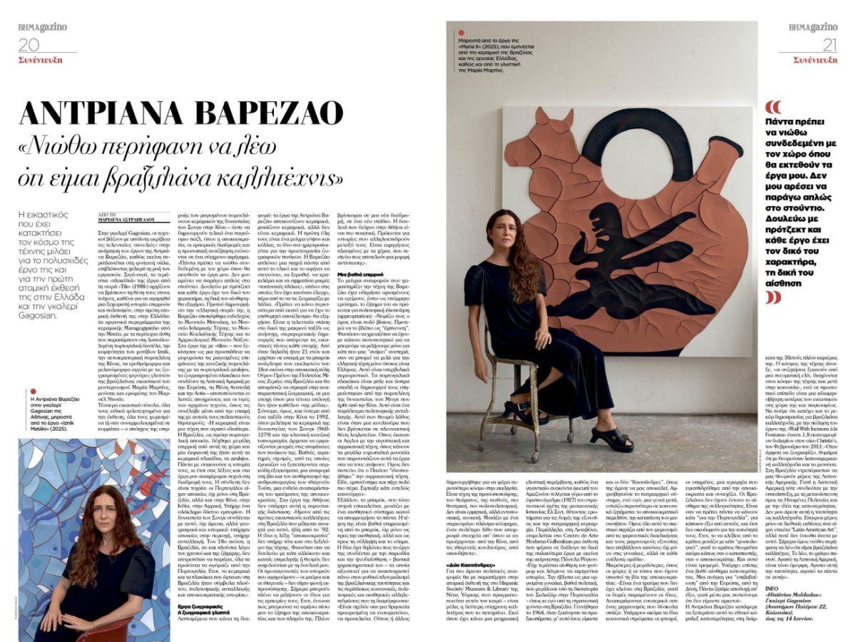 Ακόμα, η Αντριάνα Βαρεζάο, η εικαστικός που έχει κατακτήσει τον κόσμο της τέχνης μιλάει για το έργο της και την πρώτη ατομική της έκθεση στην Ελλάδα.