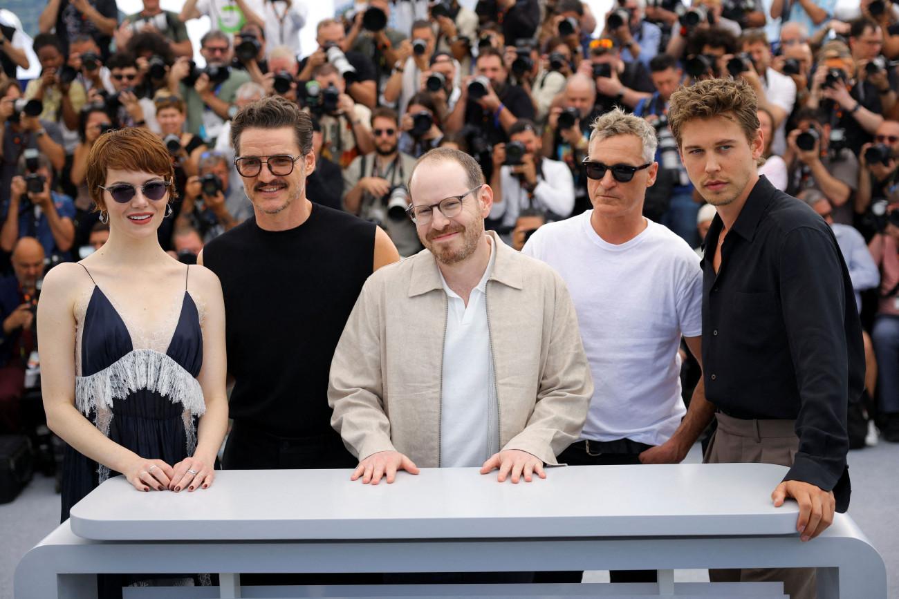 Ο σκηνοθέτης Άρι Άστερ και οι ηθοποιοί Έμα Στόουν, Πέντρο Πασκάλ, Χοακίν Φίνιξ και Όστιν Μπάτλερ, ποζάρουν κατά τη διάρκεια μιας φωτο-κλήσης για την ταινία «Eddington» στο διαγωνιστικό τμήμα του 78ου Φεστιβάλ Κινηματογράφου των Καννών στις Κάννες, Γαλλία, 17 Μαΐου 2025. REUTERS/Stephane Mahe
