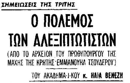 Είκοσι χρόνια αργότερα, ο Ηλίας Βενέζης, σπουδαίος έλληνας πεζογράφος και σταθερός συνεργάτης του «ΒΗΜΑΤΟΣ», δημοσιεύει την αφήγηση του Εμμανουήλ Τσουδερού που βίωσε από κοντά τα συνταρακτικά αυτά γεγονότα.