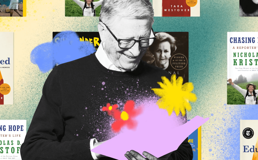 ‘Chasing Hope,’ του Nicholas Kristof . Το 1997, ο Νικ Κρίστοφ έγραψε ένα άρθρο που άλλαξε την πορεία της ζωής μου, τονίζει ο Γκέιτς και προσθέτει: «Αφορούσε τον τεράστιο αριθμό παιδιών σε φτωχές χώρες που πέθαιναν από διάρροια—και με βοήθησε να αποφασίσω σε τι ήθελα να επικεντρώσω την φιλανθρωπική μου προσφορά. Παρακολουθώ το έργο του Νικ από τότε και έχουμε κρατήσει επαφή. Έχει κάνει ρεπορτάζ από περισσότερες από 150 χώρες, καλύπτοντας τον πόλεμο, τη φτώχεια, την υγεία και τα ανθρώπινα δικαιώματα. Σε αυτό το καταπληκτικό απομνημόνευμα, ο Νικ γράφει για το πώς παραμένει αισιόδοξος για τον κόσμο παρά όλα όσα έχει δει. Το βιβλίο του με έκανε να σκεφτώ: Ο κόσμος θα ήταν καλύτερος με περισσότερους Νικ Κρίστοφ».