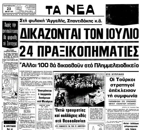 «ΤΑ ΝΕΑ», 23.5.1975, Ιστορικό Αρχείο «ΤΟ ΒΗΜΑ» & «ΤΑ ΝΕΑ»