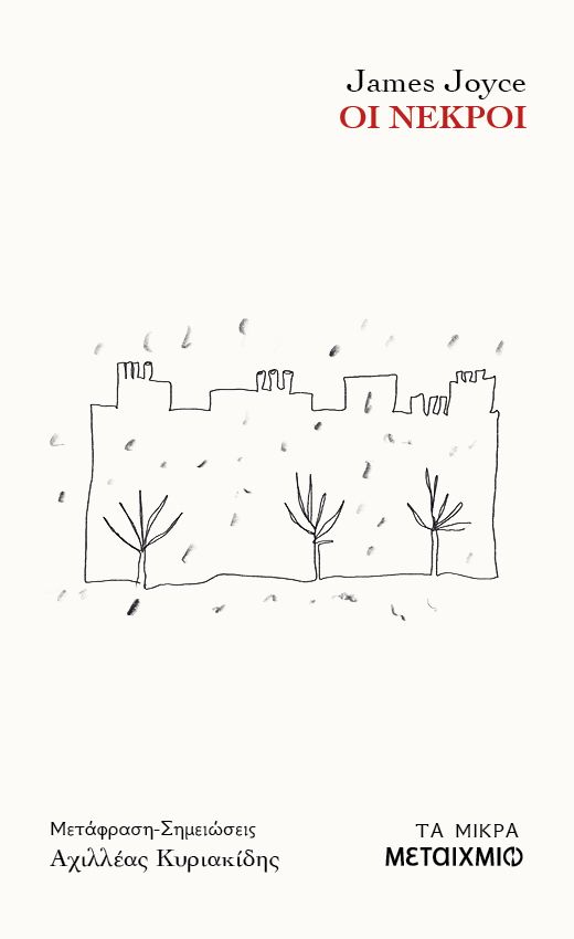 «Οι νεκροί» (1906-1907) είναι, ως γνωστόν, το τελευταίο διήγημα στη συλλογή «Οι Δουβλινέζοι» του Τζόις, η οποία εκδόθηκε το 1914. Σε αυτό περιγράφεται η ετήσια μάζωξη συγγενών και φίλων την περίοδο των Χριστουγέννων στο σπίτι των δεσποινίδων Μόρκαν. Μέσα σε 86 σελίδες μαθαίνουμε τις προσωπικές ιστορίες δέκα χαρακτήρων. Αλλά η κορύφωση ανήκει στον Γκέιμπριελ Κόνροϊ (κρατάμε φυσικά τη βιβλική αναφορά του ονόματος Γαβριήλ) και τη γυναίκα του Γκρέτα, όταν καταλήγουν στο ξενοδοχείο μετά τη χοροεσπερίδα. Εκεί όπου η γυναίκα έχοντας ακούσει νωρίτερα ένα τραγούδι θυμάται «κάποιον που ήξερε στο Γκόλγουεϊ, όταν ζούσε εκεί με τη γιαγιά» της: τον εφηβικό της έρωτα Μάικλ Φιούρι, ο οποίος πέθανε πολύ μικρός (κι εδώ το όνομα παραπέμπει στον δεύτερο «Αρχάγγελο»). Η μετάφραση του Αχ. Κυριακίδη ξαναβρίσκει νοήματα σε μια ιστορία γνωστή επισημαίνοντας καίριες λέξεις. Αν έχει κάποιο νόημα, ας θυμηθούμε το τέλος του αφηγήματος -τόσο γνωστό που δεν αποτελεί spoiler, φυσικά- με όλες τις χριστιανικές αναφορές στο μαρτύριο του Ιησού: «Είχε αρχίσει να χιονίζει ξανά. Παρακολούθησε νυσταγμένα τις νιφάδες, ασημένιες και σκούρες, να πέφτουν λοξά στο φως του φαναριού… Ναι, οι εφημερίδες είχαν δίκιο: χιόνιζε παντού, σ’ όλη την Ιρλανδία. Το χιόνι έπεφτε σε κάθε γωνιά της σκοτεινής κεντρικής πεδιάδας, στους γυμνούς λόφους, έπεφτε απαλά στο Μπογκ-οφ-Άλεν, και πιο πέρα, στα δυτικά, έπεφτε απαλά στα σκοτεινά ταραγμένα νερά του Σάνον. Έπεφτε και σε κάθε γωνιά του μοναχικού νεκροταφείου στο λόφο όπου ήταν θαμμένος ο Μάικλ Φιούρι. Απλωνόταν, πυκνό, πάνω στους γερμένους σταυρούς και στις ταφόπλακες, στα μυτερά κάγκελα της μικρής πύλης, στα στείρα αγκάθια».