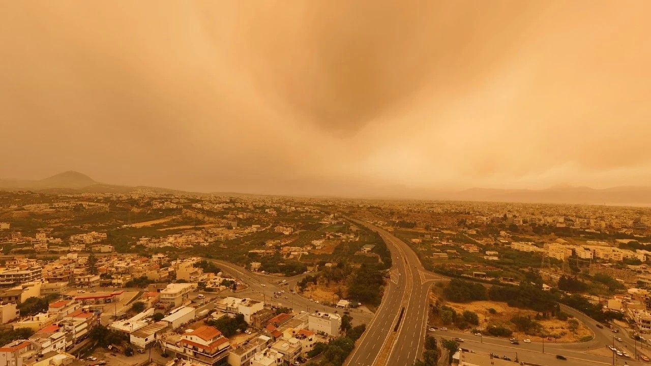 Κρήτη: «Βάφτηκε» πορτοκαλί ο ουρανός του Ηρακλείου από τη σκόνη – Δείτε βίντεο από drone