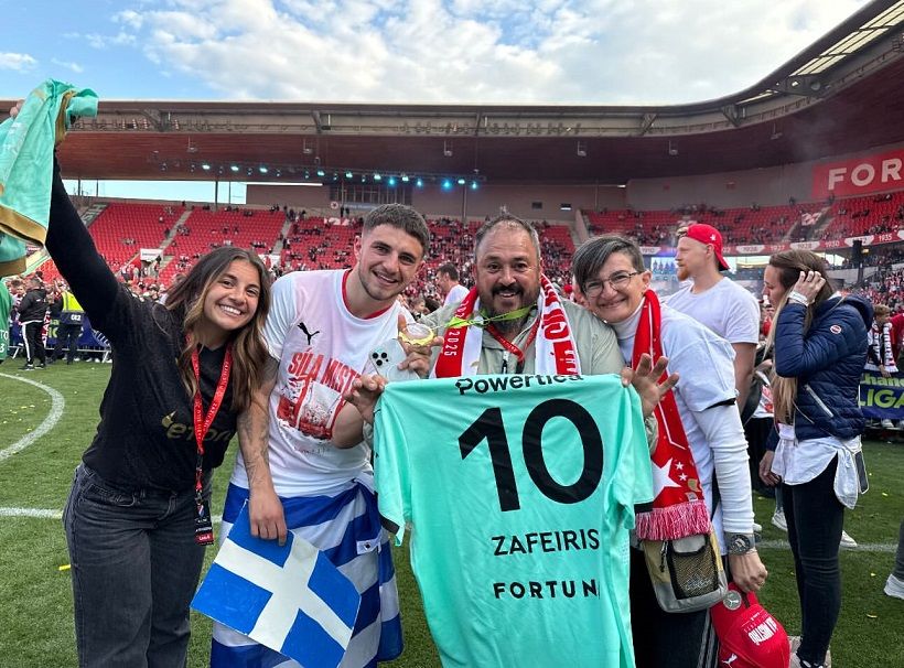Ο Χρήστος Ζαφείρης χάρηκε με την ψυχή του την κατάκτηση του πρωταθλήματος με την Σλαβία Πράγας, όπου έβαλέ και την «ελληνική» πινελιά στους πανηγυρισμούς του.