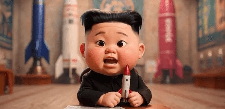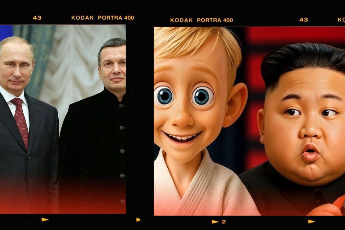 Ο μίνι Πούτιν εμφανίζεται δίπλα σε μια λούτρινη αρκούδα, φορώντας ένα γούνινο καπέλο με κόκκινο αστέρι, ο μίνι Κιμ παίζει ασταμάτητα με έναν παιχνίδι-πύραυλο, με φόντο μεγαλύτερα όπλα, ενώ το avatar του είναι ένα σύννεφο μανιταριού. Ο μίνι Τραμπ; Ε, αυτός απεικονίζεται ως Πάπας που ευλογεί μάλλον MAGA πιστούς.