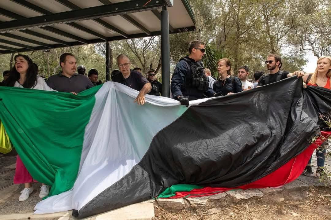 Το πρωί της Τετάρτης μέλη της Νέας Αριστεράς και της Νεολαίας του κόμματος πραγματοποίησαν ακτιβισμό στην Ακρόπολη υψώνοντας την σημαία της Παλαιστίνης.