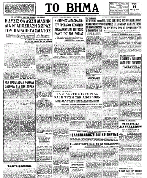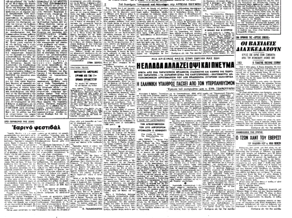 Στην αίθουσα της Αρχαιολογικής Εταιρείας ο αρχηγός της Αποστολής του Έβερεστ μίλησε προχτές, προβάλλοντας θαυμάσιες εικόνες, για την ανάβαση που πραγματοποίησε η Βρεττανική αποστολή στον Καύκασο, στα 1958. Ήταν μια λαμπρή στην απλότητα και την ενέργειά της προβολή των δυσκολιών και της ομορφιάς μιας αναρρίχησης. Είναι κρίμα ότι μια τέτοια προβολή δεν στάθηκε δυνατόν να την παρακολουθήσουν πολλοί νέοι. […]